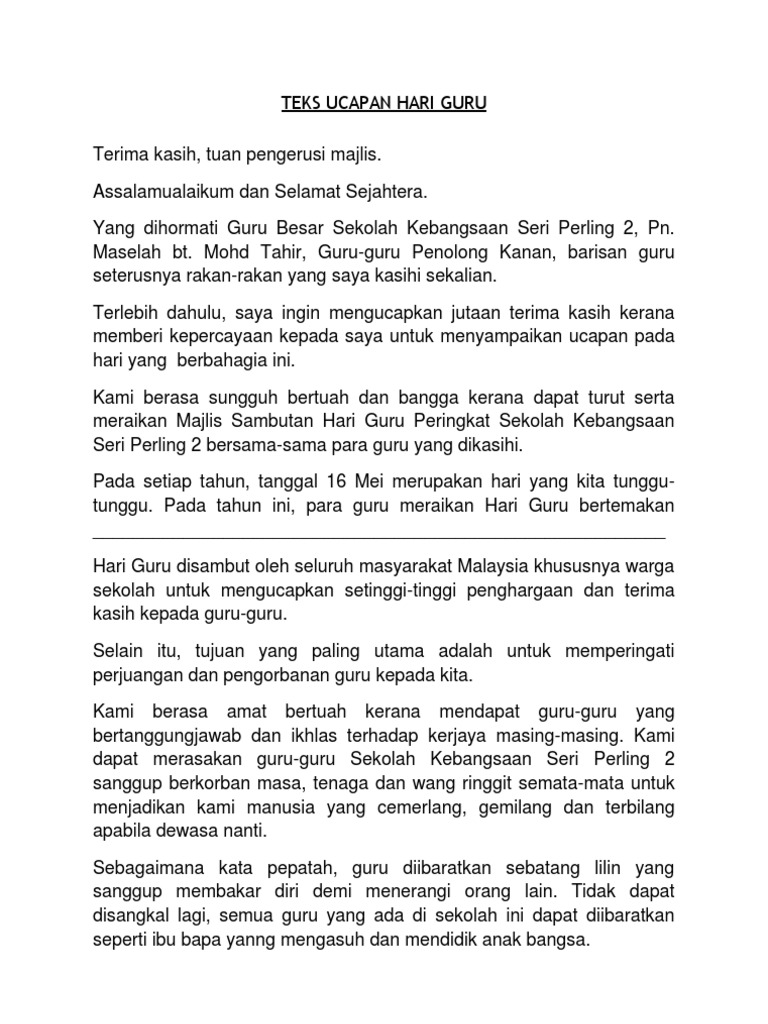 Related : Teks Pengacara Majlis Hari Guru Peringkat Sekolah / Pagi yang indah penuh ceria..