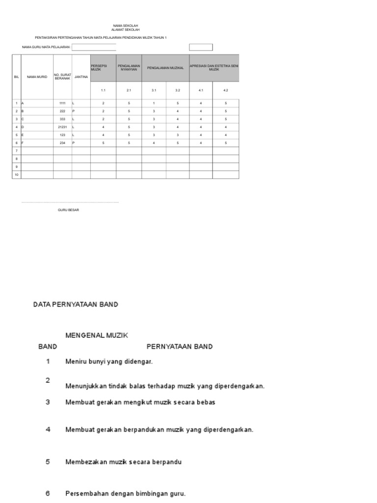 Kurikulum pendidikan muzik sekolah rendah dibina berasaskan empat modul kurikulum dengan peratus pengagihan. Jangan lupa share kepada kawan2 ya pada group whasapp dan telegram.klik sahaja button share tersebut. Rancangan pelajaran pendidikan muzik tahun 6. Download borang perekodan pelaporan offline tahun 6. Panduan merekod prestasi murid 1 pelaporan pendidikan muzik tahun lima ini mengandungi lima helaian iaitu :