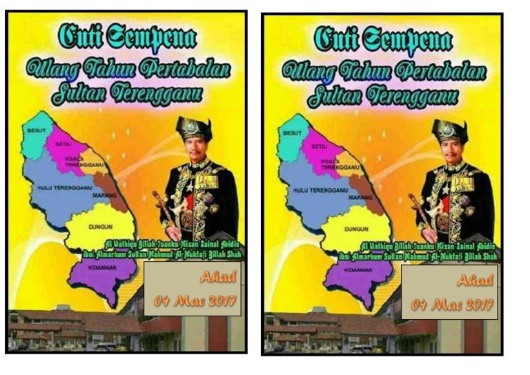 Cuti Pertabalan Sultan Terengganu 2017 from 1.bp.blogspot.com Maybe you would like to learn more about one of these? We did not find results for: Check spelling or type a new query.